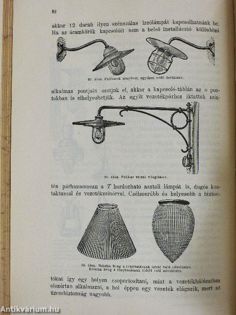 Megjegyzés: A gyakorlati elektrotechnika kézikönyve czímű munkának teljesen átdolgozott és módosított kiadása. A szövegbe nyomott 271 fekete-fehér ábrával és két kihajtható melléklettel. Nyomtatta a Pallas Részvényársaság nyomdája, Budapest.