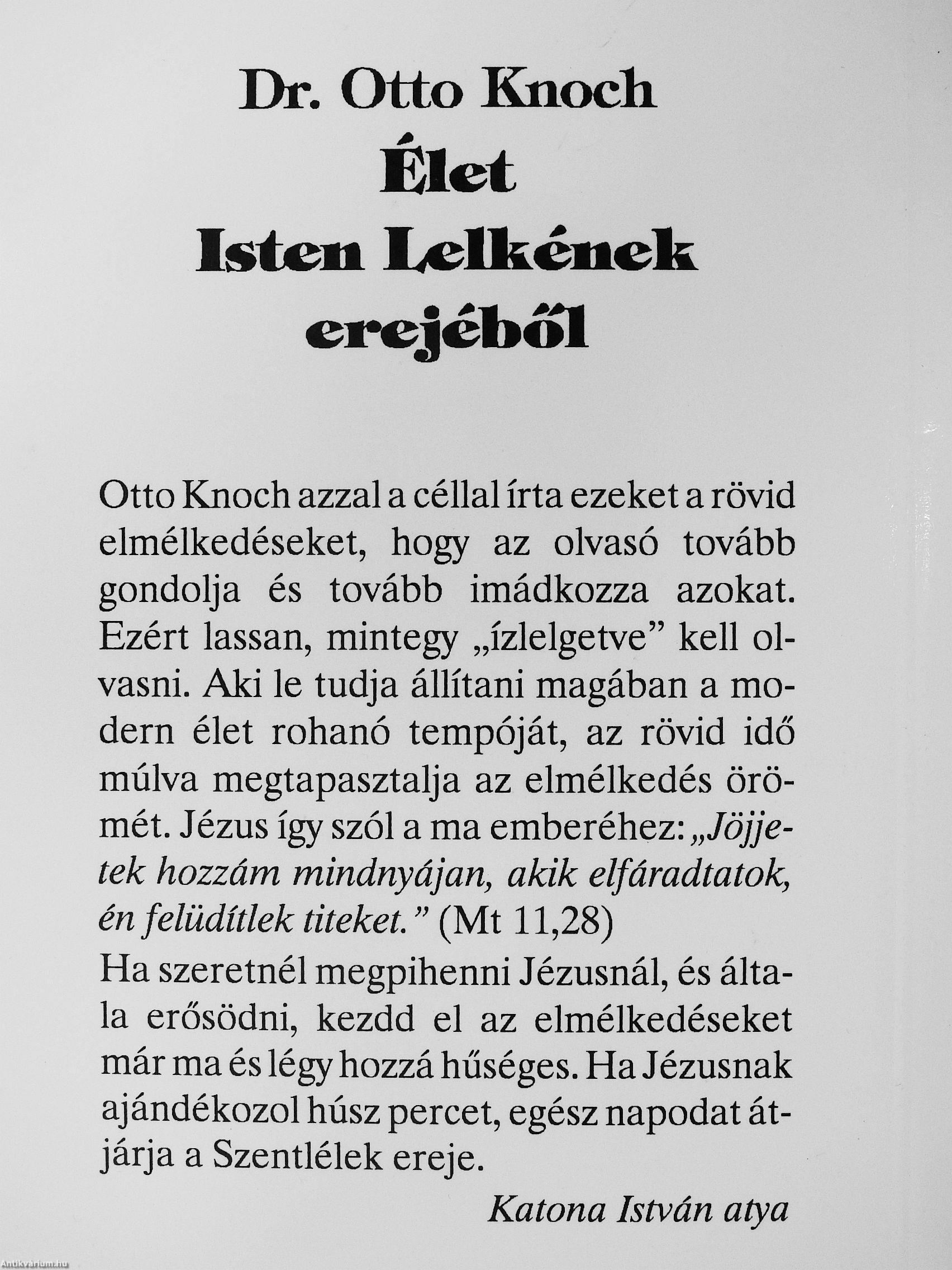 Ottó Knoch azzal a céllal írta ezeket a rövid elmélkedéseket, hogy az olvasó tovább gondolja és tovább imádkozza azokat. Ezért lassan, mintegy „ízlelgetve" kell olvasni. Aki le tudja állítani magában a modern élet rohanó tempóját, az rövid idő múlva megtapasztalja az elmélkedés örömét. Jézus így szól a ma emberéhez: „Jöjjetek hozzám mindnyájan, akik elfáradtatok, énfelüdítlek titeket." (Mt 11,28) Ha szeretnél megpihenni Jézusnál, és általa erősödni, kezdd el az elmélkedéseket már ma és légy hozzá hűséges. Ha Jézusnak ajándékozol húsz percet, egész napodat átjárja a Szentlélek ereje.