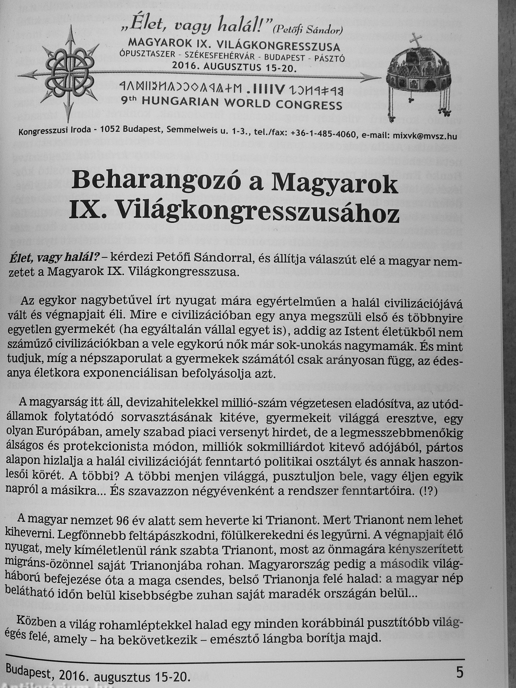 Magyarok IX. világkongresszusa I./Jövő a Szent Korona jegyében - nemzetstratégiai konferencia - 2016. augusztus 16-18.