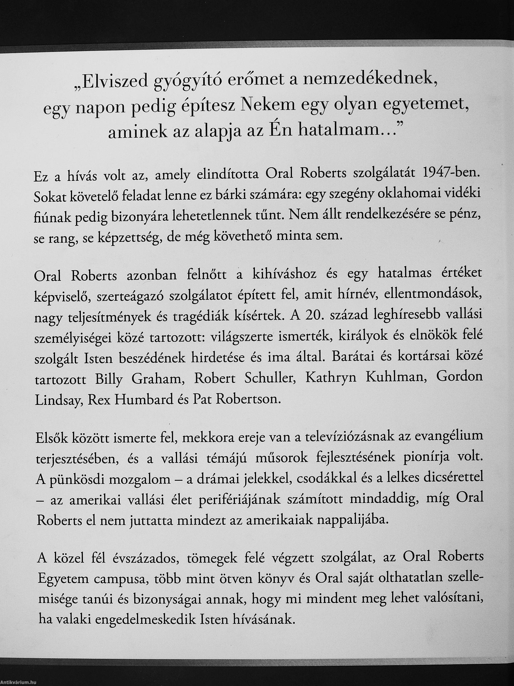 Oral Roberts műveinek az Antikvarium.hu-n kapható vagy előjegyezhető listáját itt tekintheti meg: Oral Roberts könyvek, művek