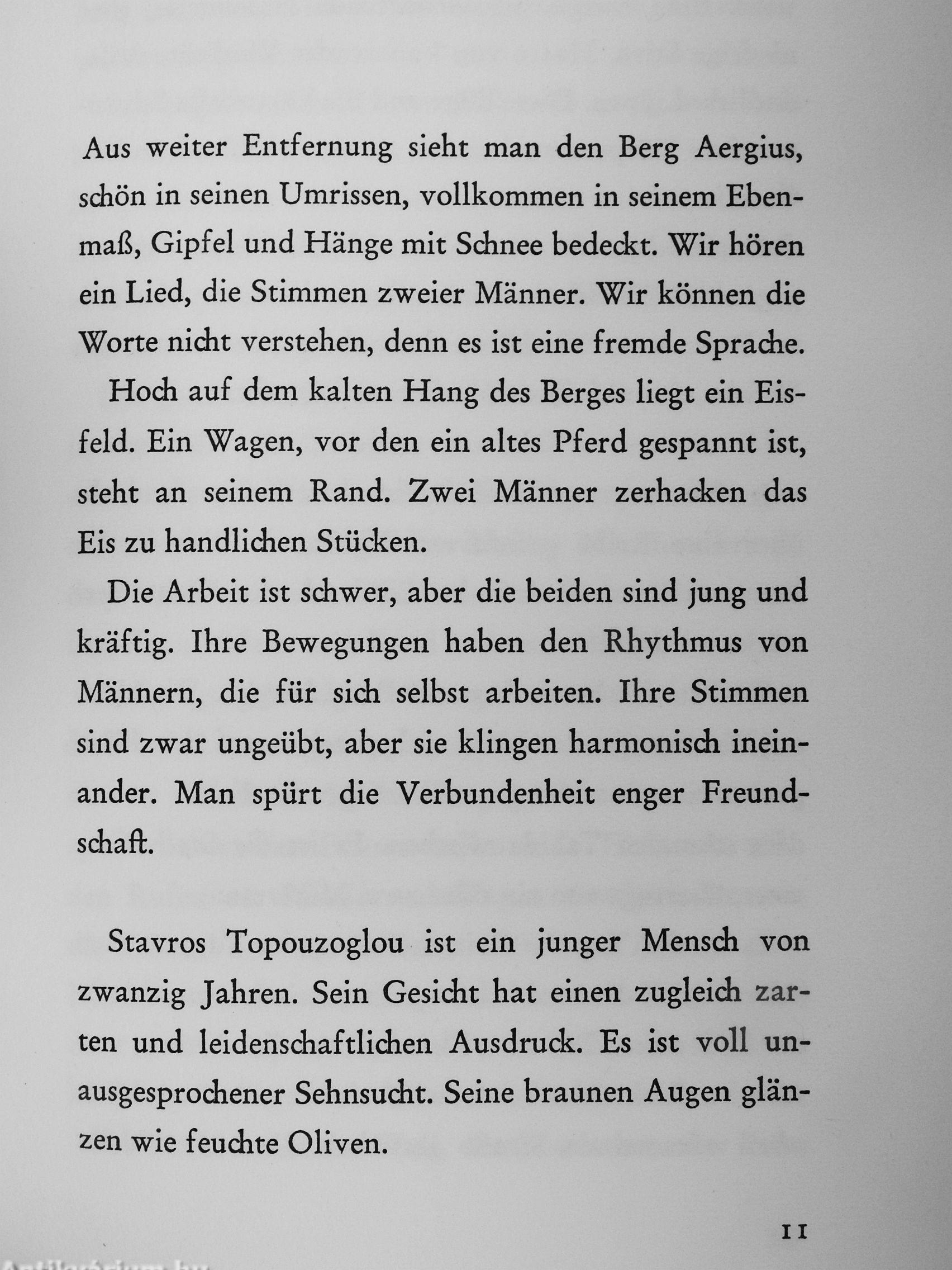 Das Buch erzählt die Geschichte Stavros, eines jungen Mannes, der zu der unterdrückten Minderheit der Griechen in der Türkei gehört und der sich aufmacht in das Gelobte Land der Freiheit, Amerika. Sein Weg ist abenteuerlich, grausam, unbeirrbar, doch er klammert sich an seine leuchtende Hoffnung, sein ersehntes Ziel zu erreichen. Ohne Pathos, ohne Anklage geschrieben, wird das Leben Stavros zum Gleichnis für die ewige Sehnsucht aller Unterdrückten nach einem Gelobten Land der Freiheit und der Menschenwürde.