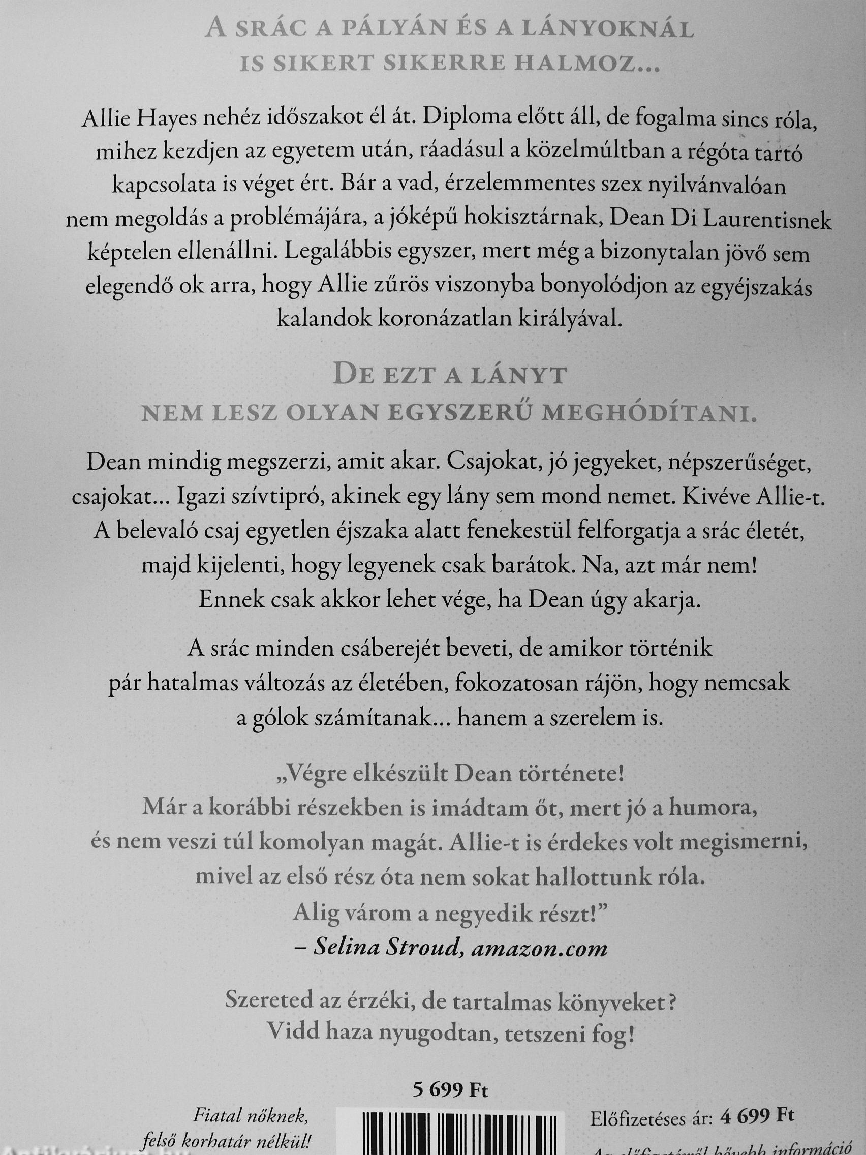 Allie Hayes nehéz időszakot él át. Diploma előtt áll, de fogalma sincs róla, mihez kezdjen az egyetem után, ráadásul a közelmúltban a régóta tartó kapcsolata is véget ért. Bár a vad, érzelemmentes szex nyilvánvalóan nem megoldás a problémájára, a jóképű hokisztárnak, Dean Di Laurentisnek képtelen ellenállni. Legalábbis egyszer, mert még a bizonytalan jövő sem elegendő ok arra, hogy Allie zűrös viszonyba bonyolódjon az egyéjszakás kalandok koronázatlan királyával.