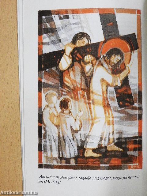 Ez a füzet, melyet kezében tart az olvasó, dr. Kákonyi Asztrik ferences szerzetes, festőművész munkája. Magyar nyelvű változata ez annak a kis könyvecskének, ami tavaly jelent meg a bécsi ferencesek gondozásában gyermekek számára. Asztrik atya halála óta (1990. Mindenszentek napján) ez a kiadvány lesz az első, amely közkinccsé teszi belső világának gazdagságát, megcsillantja Istenbe merült életének igazgyöngyeit. A magyar változat - követve a hagyatékban fennmaradt kéziratot - elsősorban felnőtt keresztények számára készült. Magyarország ma missziós terület, s a misszióban az apostolkodás imádsággal kezdődik. Az apostolkodás elsősorban imádság (II. János Pál). Ez a meggyőződés vezette Asztrik atyát, amikor az elmúlt években a képek és a szöveg összeállításán dolgozott. Súlyos betegséggel küszködve, napról napra átélte és megélte Krisztus húsvéti titkát: az örvendezésben, szenvedésben s végül a megdicsőülésben. A képeken és az elmélkedéseken is átizzik az a belső tűz, amely egész földi életében jelen volt, kezdve a szerzetesi életre való meghívástól, a teológia és a szent művészet oktatásán át, az ország számos templomának falain fölragyogtatott világosságig: Isten országának megtapasztalásáig.