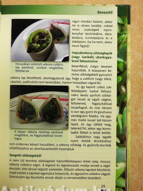 Természetesen mindezek mellett ha igényünk van rá, ehetünk főtt ételeket is. A fontos az, hogy minél több friss zöldséget és gyümölcsöt fogyasszunk, s ezt nagy örömmel, megelégedettséggel tegyük! Ebben nyújt segítséget ez a Magyarországon úttörő könyv. Vissza