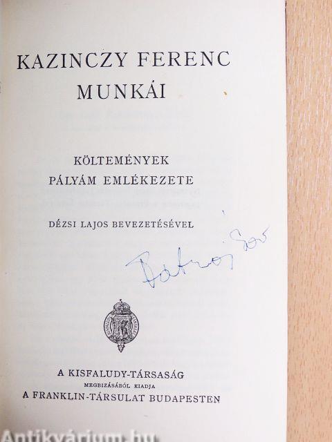 | 1. kötet: Kazinczy Ferenc munkái - Költemények/Pályám emlékezete | |