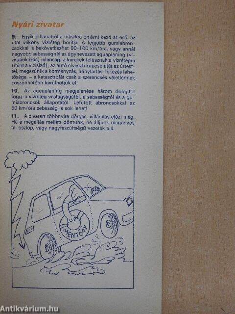 2. Havas, jeges nyálkás utakon teljesen elszoktunk a gumicsikorgástól. Ha versenyzői stílusban megyünk be egy kanyarba, és csikorog a gumi, - ez természetes. De ha lassú kanyarvételnél is gumicsikorgást hallunk, haladéktalanul vizsgáltassuk át a futóművet. Egyrészt a stabilitás, másrészt a nagymérvű gumikopás elkerülése érdekében.
