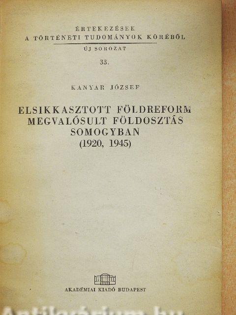 | Az elsikkasztott földreform (1920-1944) | |