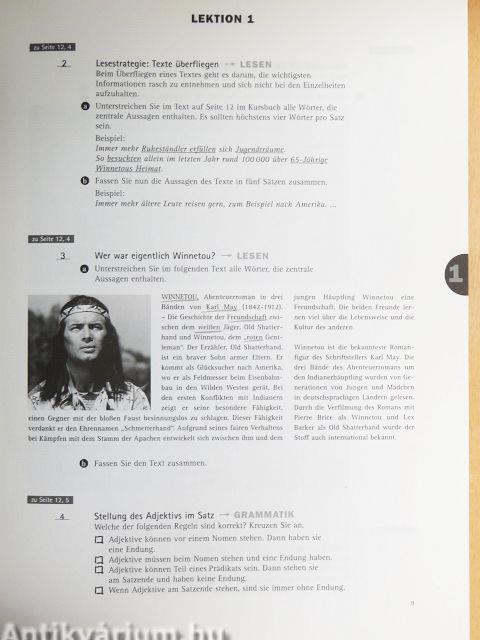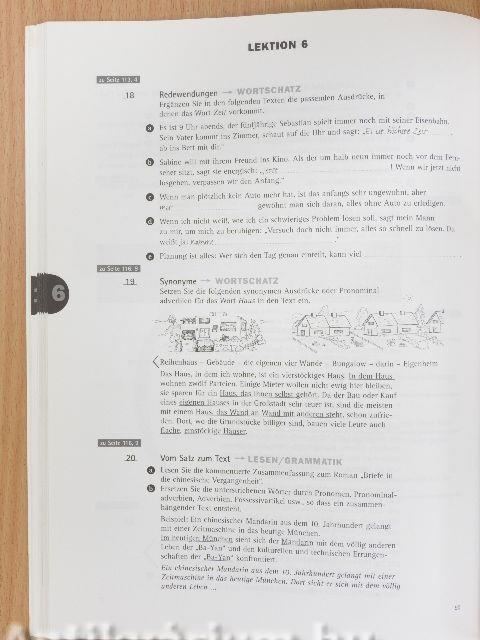 yC^4 tfi das Lehrwerk im Baukastensystem Drei Baüde führen zur Zentralen Mittelstufenprüfung des Goethe-Instituts. Lernerorientierung Das Lehrwerk isi irt übrrschauI)íirc, ifi sich gesehlossenc Bausteine elngetellt. I.ehrer und l.erner stellen ihr l.crnprogramm indlviduell zusanimen. Sie können das Much sowohl Seite für Seite dureharheilen als auch je nach l.crnintcressc Schwerpunkle setzenbietet somit Material lur viele indlvlduelle KursplSne. Das Arbeitsbuch ist vor allém für das sclbstiindige Arbeiten zu Mause gcdacht, hielet aber auch Übungen, die im IJnterricht elngesetzt werden können. Es enthüli: # Lernwortschatz zu jeder Lektion # vertlefende Übungen zu Grammatik, Wortschatz und den Fertigkeiten • Ausspraehetraining • Fragebogen zur Lernkontrolle