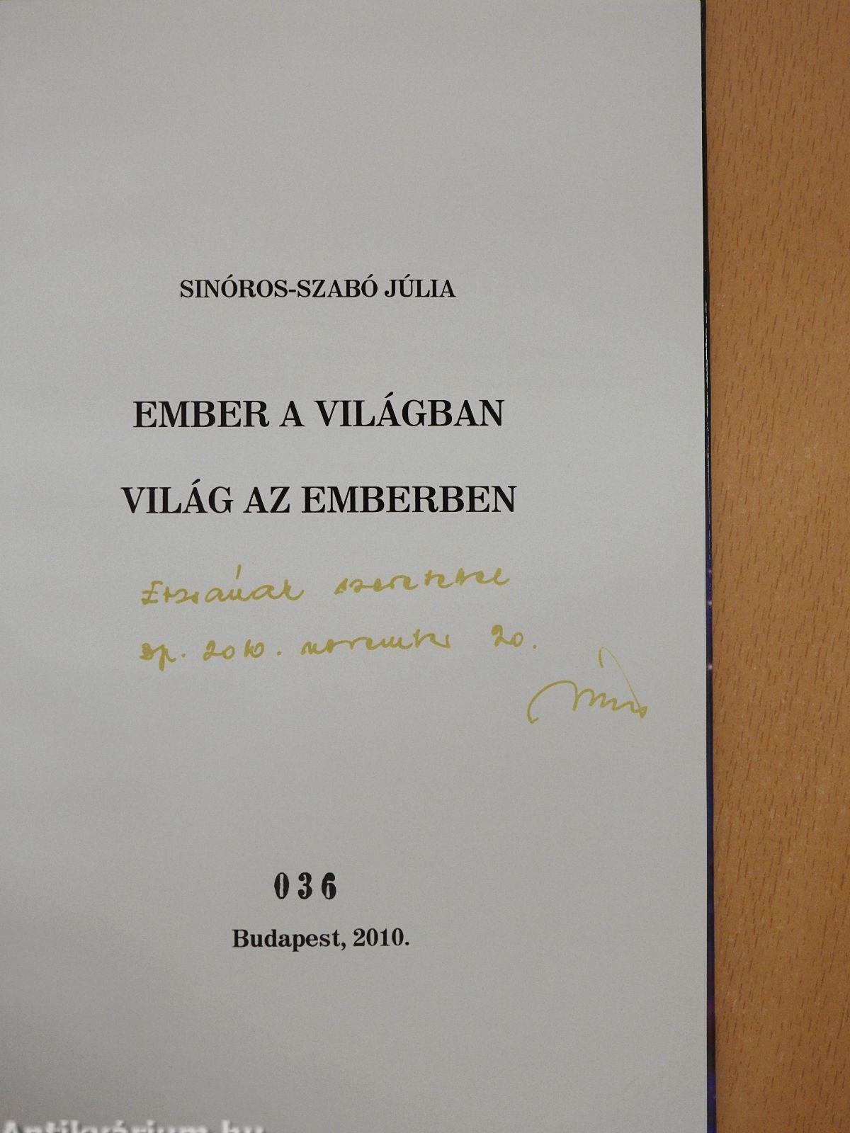 A címlapon a szerző, Sinóros-Szabó Júlia névre szóló dedikációja látható.