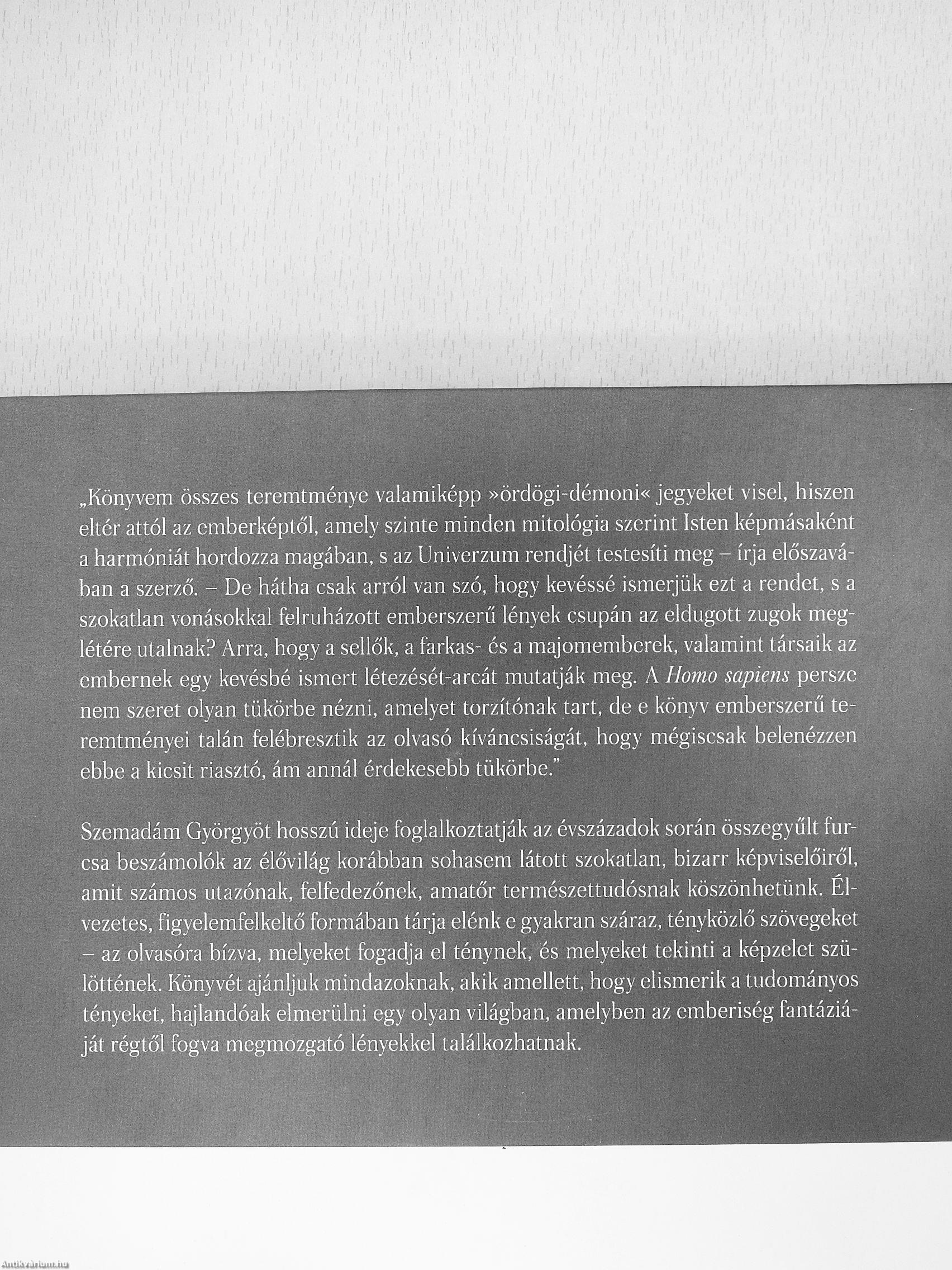 | Megjegyzés: | Ez a könyv a Méry Ratio Kiadónál 2007-ben megjelent Hihetetlen lények könyve második részének átdolgozott és bővített kiadása. Fekete-fehér illusztrációkkal és fotókkal. |