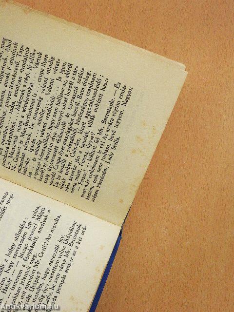 Erős, jól kifejlett természetes érzései, ösztönei voltak, nagyon szerette a családját. Tudta kívülről mindenkinek a gondolatát. De mikor rájött az ilyen keserves hangulat, mint a mostani, kínosan bosszantotta őt a család. A három fia mind növendék-kamaszfiú, mintha minden reggel meghosszabbodtak volna a lábaik, óráról-órára növekedtek; ráültek olyan székre, amelyre éppen ő akart ülni; játékukkal tönkretették az ő saját pianóláját; durva, üres röhejjel töltötték meg a házat; olyan élceken kacagtak, amikre az ember nem lehet kíváncsi; beletréfáltak öreges, ártatlan flirtjeibe, amik eddig Sydenhamben egyetlen vigasza voltak; tenniszjátéknál lefőzték; vígan püfölték egymást és kettesével, hármasával gurultak le a lépcsőn hallatlan zsivaj közepette. A kalapjuk mindenütt látható. Reggelire megkésve érkeznek. Este viharos: Huj huj - püff! - kurjantással dőlnek ágynak. Az anyjuknak pedig mintha kedvére való volna a dolog. Sok pénzbe kerültek és valami barátságos semmibevevéssel kezelték azt a tényt, hogy minden drágább lett, mindennek emelkedett az ára, csak a Mr. Barnstaple fizetése nem emelkedett. Ha ebédnél Mr. Barnstaple egy-két egyszerű igazságot tálalt fel Mr. Lloyd George-ról vagy a legcsekélyebb kísérletet tette arra nézve, hogy a beszéd nívóját a leghülyébb mókánál egy vonallal magasabbra emelje, tüntető figyelmetlenséget tanusítottak... Vissza