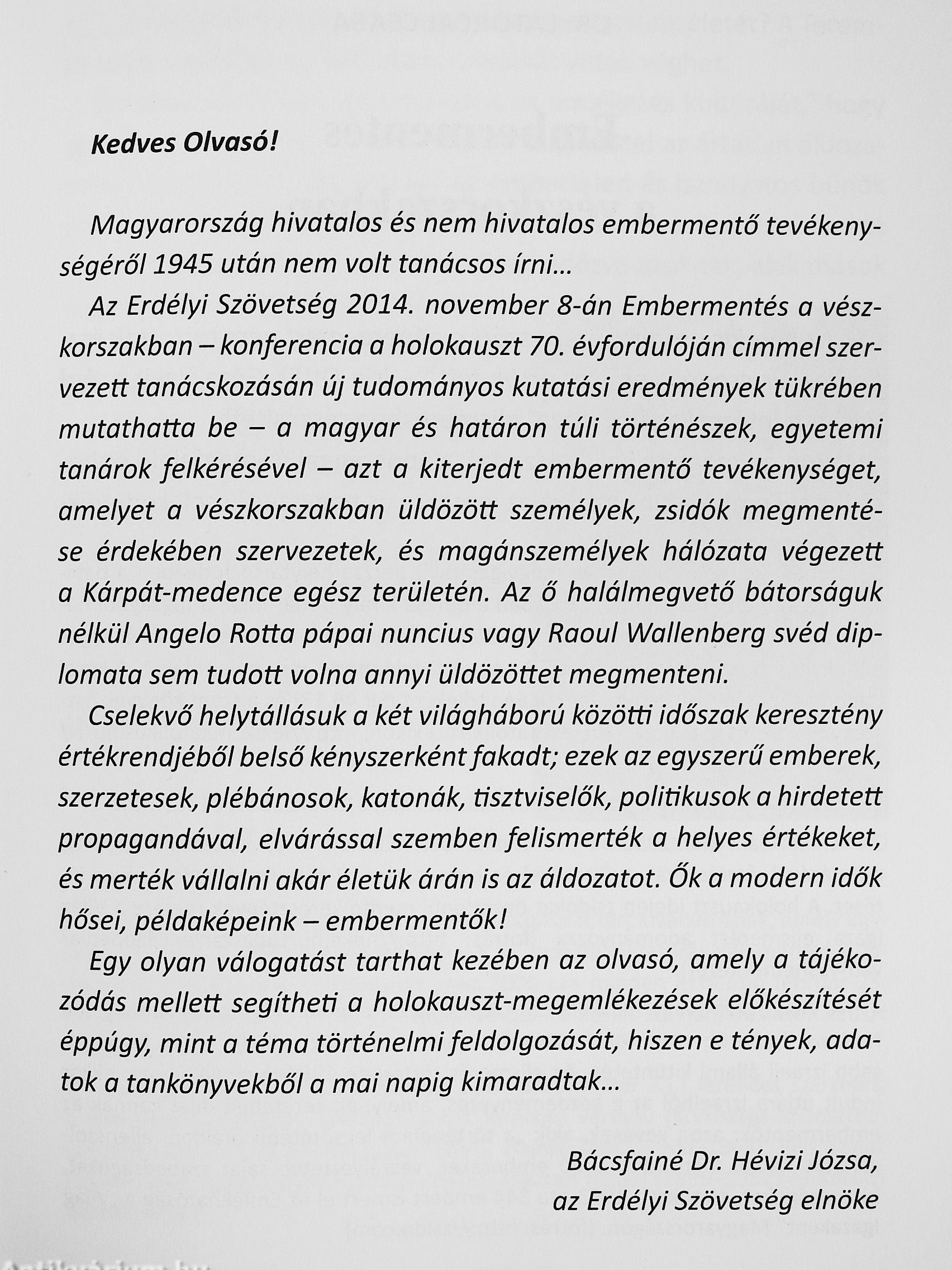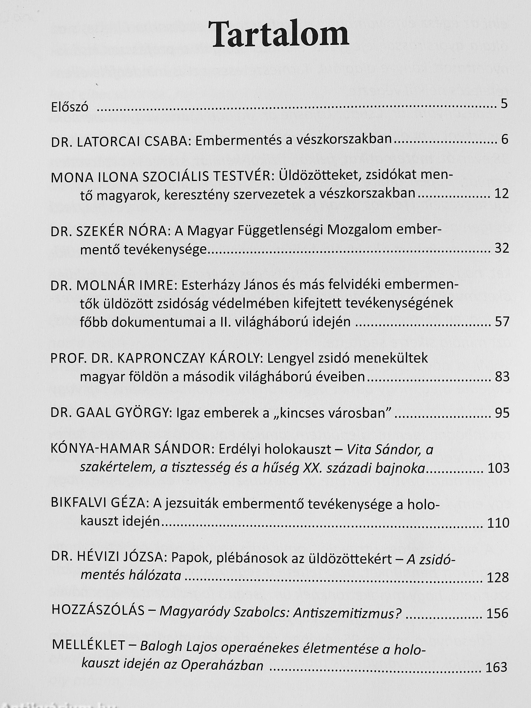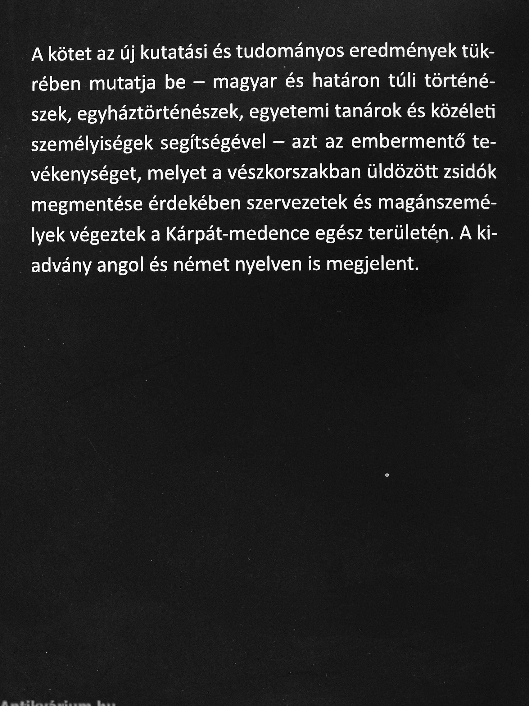 A kötet az új kutatási és tudományos eredmények tükrében mutatja be - magyar és határon túli történészek, egyháztörténészek, egyetemi tanárok és közéleti személyiségek segítségével - azt az embermentő tevékenységet, melyet a vészkorszakban üldözött zsidók megmentése érdekében szervezetek és magánszemélyek végeztek a Kárpát-medence egész területén. A kiadvány angol és német nyelven is megjelent.