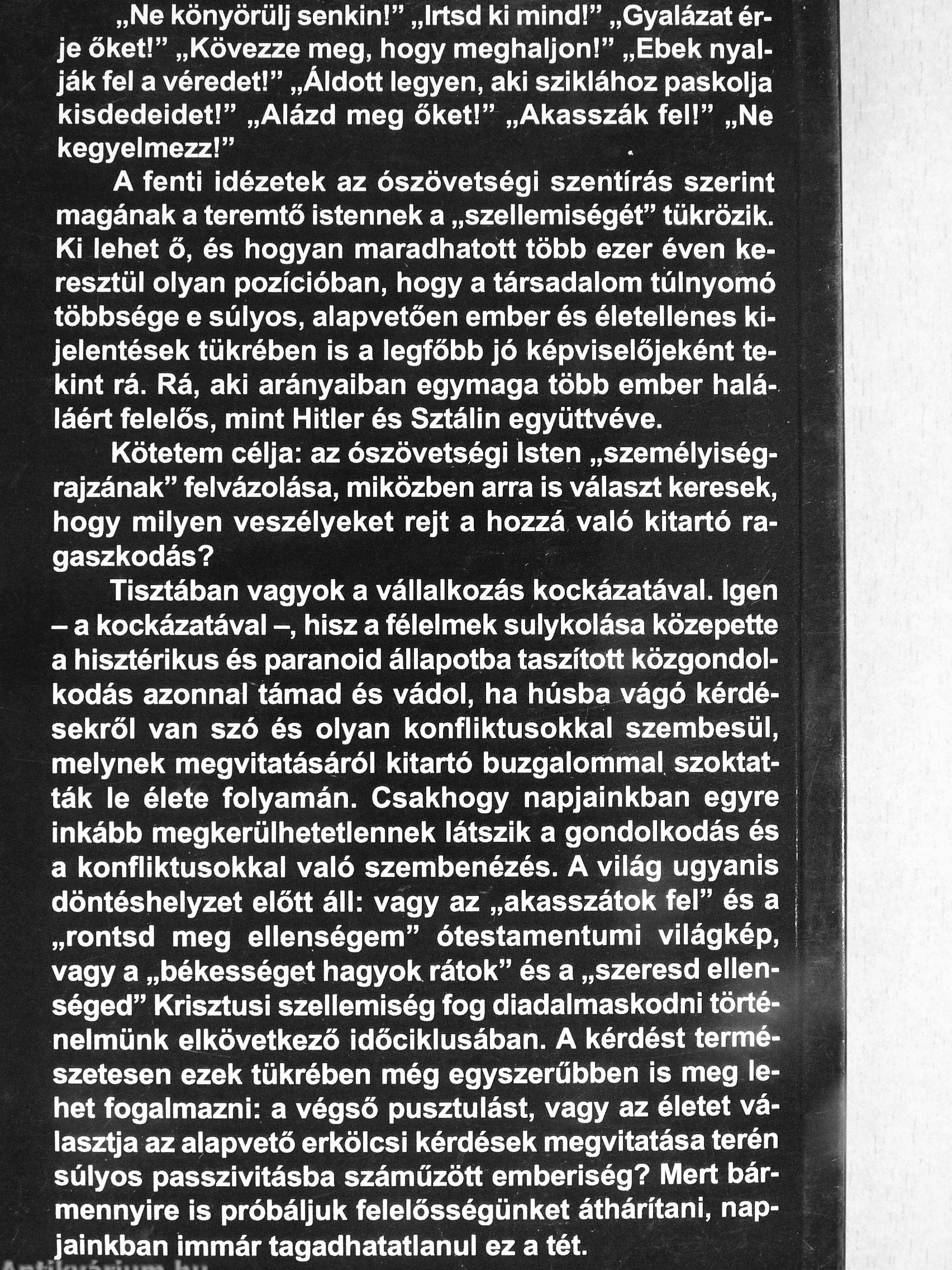 Kötetem célja: az ószövetségi Isten „személyiségrajzának" felvázolása, miközben arra is választ keresek, hogy milyen veszélyeket rejt a hozzá való kitartó ragaszkodás?