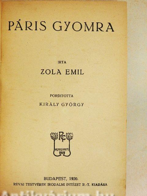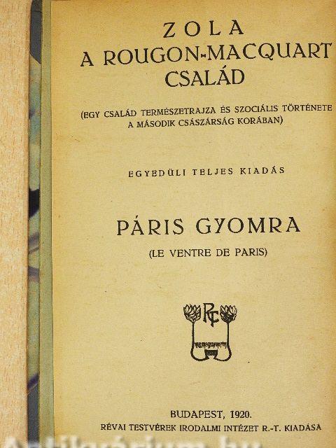 Mélységes csönd volt, a magányos úton zöldséges kocsik kapaszkodtak föl Páris felé; a ritmikus kerékzörgés visszhangot vert a házak falain, melyek álmosan bóbiskoltak kétfelől, a szilfák elmosódó sorai mögött. Egy káposztás talyiga és egy borsós talyiga csatlakozott a neuillyi hídnál nyolcz sárgarépával és fehér-répával telt szekérhez, melyek Nanterre felől érkeztek; a lovak maguktól baktattak, lehajtott fővel, kitartó és lomha koczogással, melyet a kapaszkodó egyre lassított. Fönt, a rakomány tetején, hason fekve, fekete és szürke, csíkozott szűreikbe burkolózva, szundikáltak a kocsisok, a gyeplő a csuklójuk köré volt csavarva. Egy-egy gázlámpa, megszakítva a sötét árnytakarót, megvilágította egy bakancs szögeit, egy zubbony kék ujját, egy sipka ellenzőjét, a mint föltüntek a vörös és fehér répacsomók rengeteg erdejében, a borsó és a káposzta kicsorduló zöldjében. És mindenfelé, az országúton sé a szomszédos utakon, elül és hátul, a szekerek távoli zaja hasonló szállítmányokat jelzett, egy egész áradatot, mely keresztülhömpölygött a sötétségen és az első hajnali órák nehéz álmán, elringatva a fekete várost az érkező eleség zajával.