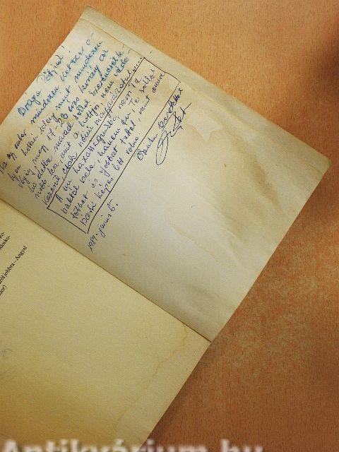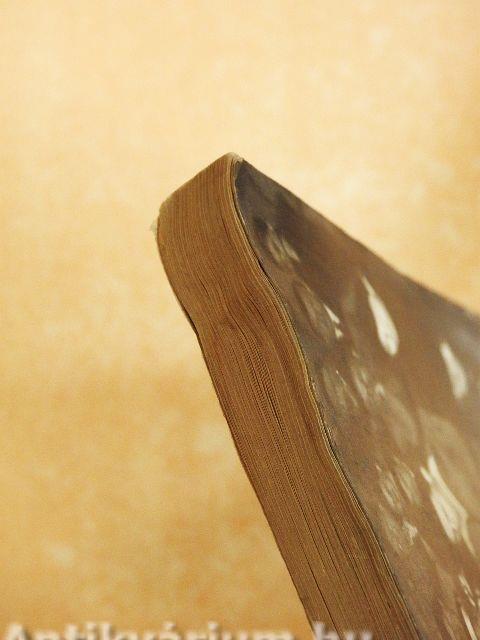 Az előlapon ajándékozási bejegyzés látható. A borító, a lapélek és több lap foltos, nedvességtől hullámos.