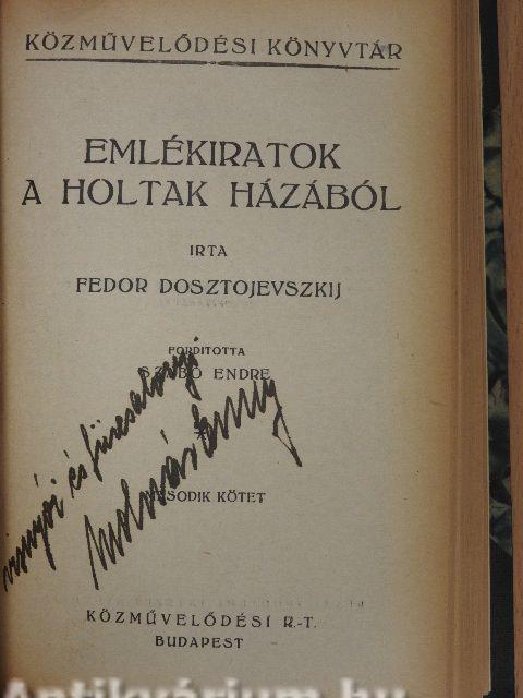 Hogy került ide, ebbe a tragikus menetbe, a mely a vastag hóban némán haladt bizonytalan sorsa elé, rettentő kétségektől gyötörten a ráváró ítélet felől?!... A mikor a felvetődő kérdésre próbálunk válaszolni, tulajdonképen prológusát mondjuk el annak a mémoireszerű, sötét és vigasztalan regénynek, a melynek homlokára tíz évvel később - a katorga után - Dosztojevszkij ezeket a megrázó szavakat irta: Emlékiratok a holtak házából. Ő maga ritkán és keveset beszélt erről a szó szoros értelmében átélt "bevezetésről". Tolla sem szivesen időzött a Petrasevszkij-dráma emlékeinél. Csak a Félkegyelmű egyik fejezetében s az Író naplójában rajzolt egyes mozzanatairól hamar elvillanó képet. Pedig az Emlékiratok jelentőségének teljes megértéséhez feltétlenül szükséges, hogy legalább nagy vonásaiban ismerjük azokat az eseményeket, a melyek nemcsak a szóbanforgó regényt hivták életre, hanem örökre kitörülhetetlen nyomokat hagytak Dosztojevszkij lelkében s egész irodalmi munkásságán.