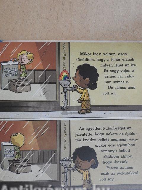 Rosa Parks már gyermekkorában is mindig kiállt magáért. Ekkor még amerikai törvények igazságtalanok voltak a feketékkel szemben: a feketék nem járhattak ugyanabba az iskolába és éttermekbe, mint a fehérek, de még ugyanazt az ivókutat sem használhatták. Színes bőrű személy csakis a busz hátulsó részén utazhatott, előre csak fehér embereket engedtek felszállni. Rosa azonban tisztában volt azzal, hogy mindenkit ugyanaz a tisztelet és jogok illetnek meg, ezért egy nap, mikor felszólította a buszsofőr, hogy adja át a helyét egy fehér utasnak, ő ülve maradt. Csendes elszántsága lavinát indított el, mely egy polgárjogi mozgalomban csúcsosodott ki, így törlődtek el Amerika igazságtalan törvényei örökre.