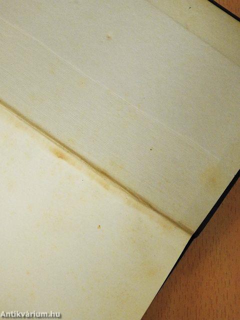 A borító elszíneződött, kopott, élei sérültek. Az előzéklapon tulajdonosi, a címlapon ajándékozási bejegyzés látható. Néhány lap elszíneződött.
