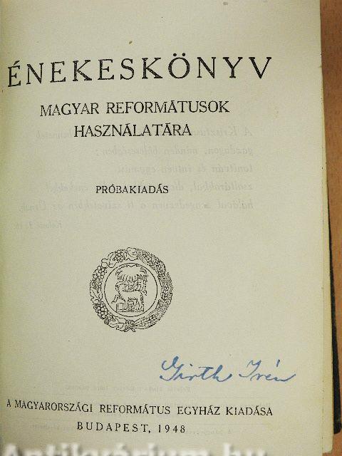| Megjegyzés: | Próbakiadás. Kottákkal. Debrecen város és a Tiszántúli református egyházkerület könyvnyomda-vállalata nyomása. A hangjegyeket Dombay Hugó hangjegy-grafikus készítette. |