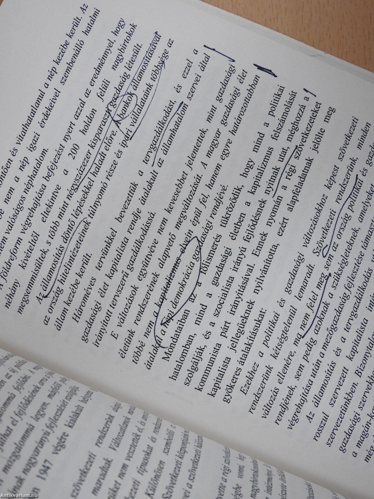 Több lapon aláhúzás, jelölés látható.