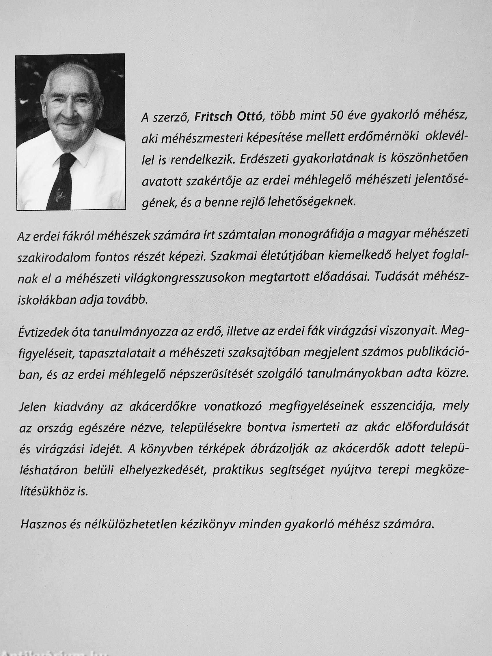 A szerző, Fritsch Ottó, több mint 50 éve gyakorló méhész, aki méhészmesteri képesítése mellett erdőmérnöki oklevéllel is rendelkezik. Erdészeti gyakorlatának is köszönhetően avatott szakértője az erdei méhlegelő méhészeti jelentőségének, és a benne rejlő lehetőségeknek.
