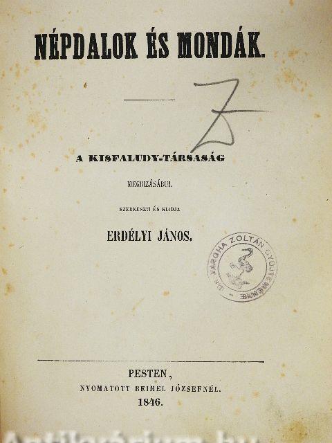 A Kisfaludy-Társaság megbizásábul szerkeszti és kiadja Erélyi János. Nyomtatott Beimel Józsefnél, Pesten.