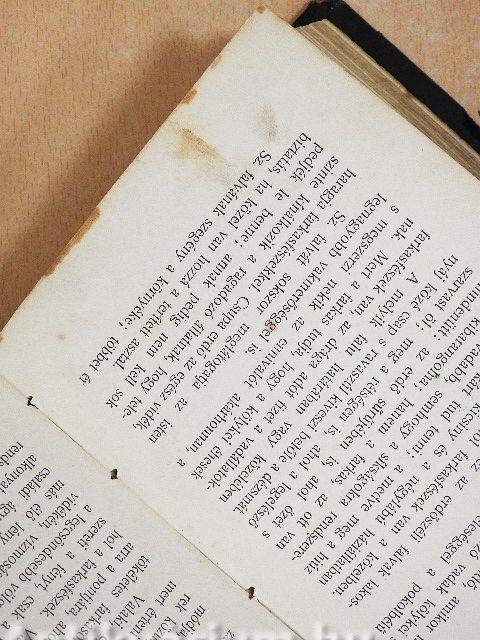 Könyvtári könyv volt. A borító, a lapélek és több lap foltos. A kötés megnyílt. A borító éle sérült.