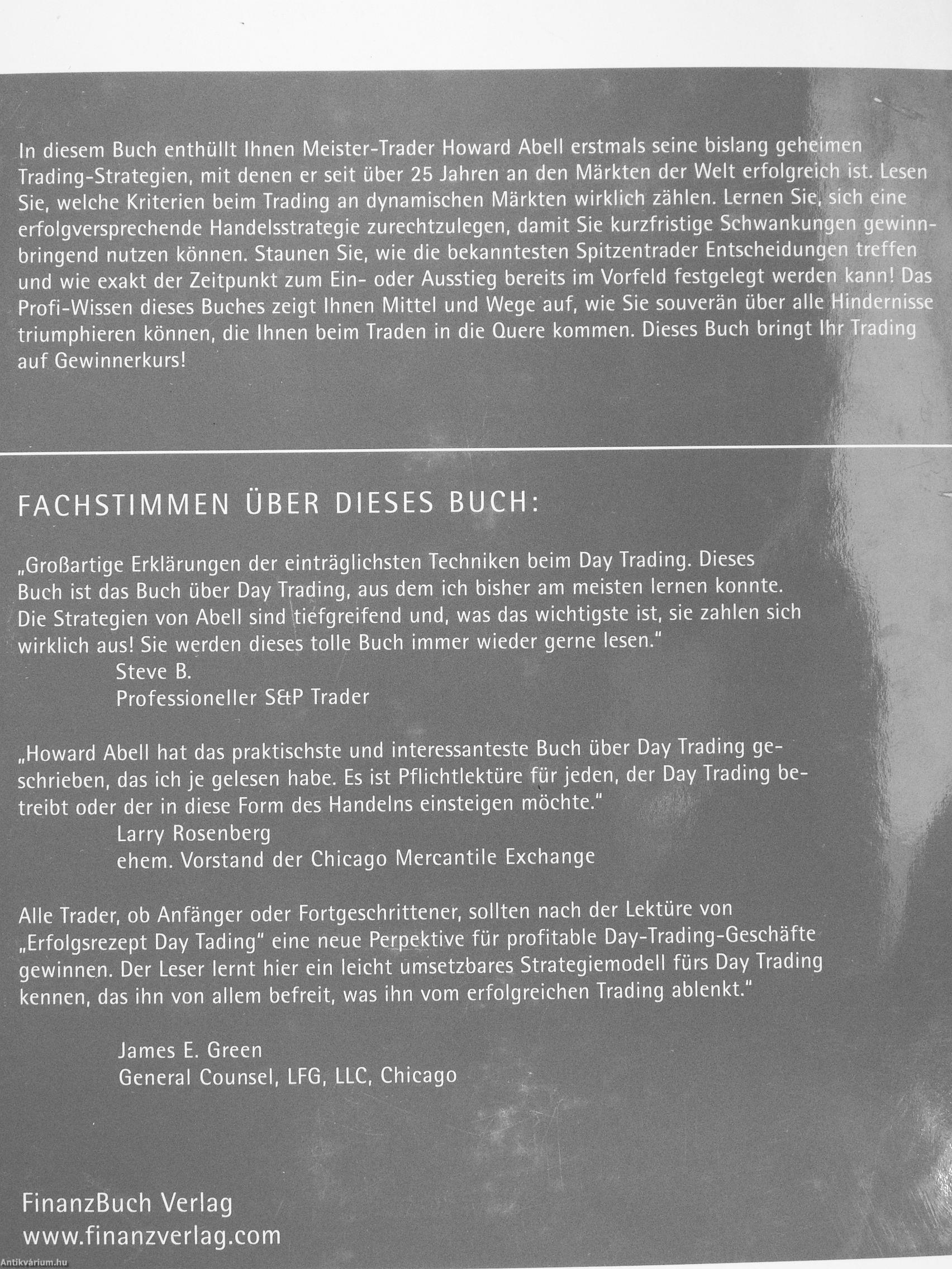 „Howard Abell hat das praktischste und interessanteste Buch über Day Trading geschrieben, das ich je gelesen habe. Es ist Pflichtlektüre für jeden, der Day Trading betreibt oder der in diese Form des Handelns einsteigen möchte." Larry Rosenberg
