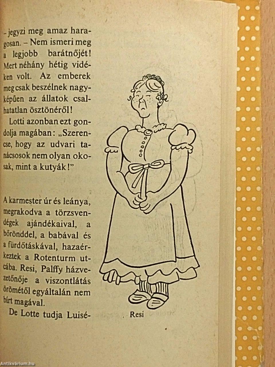 | Hol van Wagenthalerné boltja? Ugyan! A főzést nem lehet elfelejteni! Lotte integet az Operában Pralinéeső. Az első éjszaka Münchenben és az első éjszaka Bécsben. A különös álom, melyben Gerlach kisasszony boszorkányként szerepel. Szülőknek mindent szabad. Nefelejcs München 18! | 77 |
