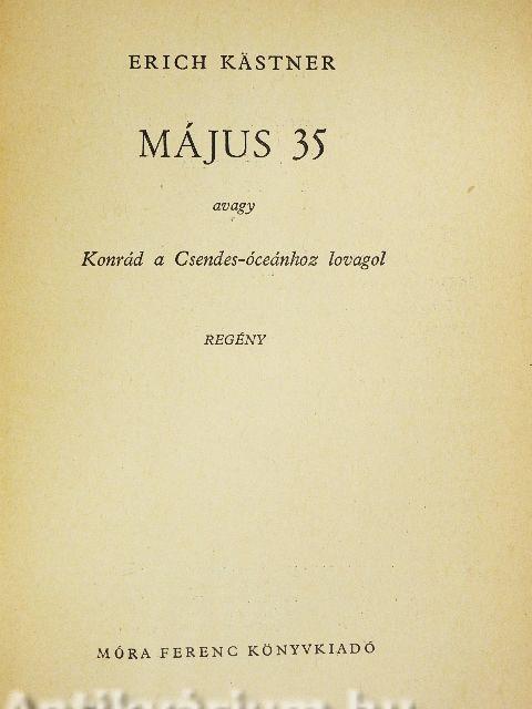 Május 35-én az ember mindenre el lehet készülve. Így aztán semmi csodálatos sincs abban, hogy Ringelhuth gyógyszerészt és unokaöccsét, Konrádot az utcán megszólítja egy fekete ló, felmegy a lakásukra kockacukrot enni, majd az egész társaság bebújik az előszobaszekrénybe, és néhány óra múlva a Csendes-óceán szigetvilágába érkezik. Közben megtekintik Eldorádót, eljutnak a fordított világba, ahol a szülők járnak iskolába, s a gyerekek oktatják őket. A Csendes-óceánnál egy valódi törzsfőnök és egy pepita bőrű kislány látja vendégül őket. Sok-sok érdekes, mulattató kaland után hazérnek, s nagyon csodálkoznak, hogy Konrád szülei nem hiszik el kalandjaikat. Persze, ők nem vették észre, hogy minden május 35-én történt...