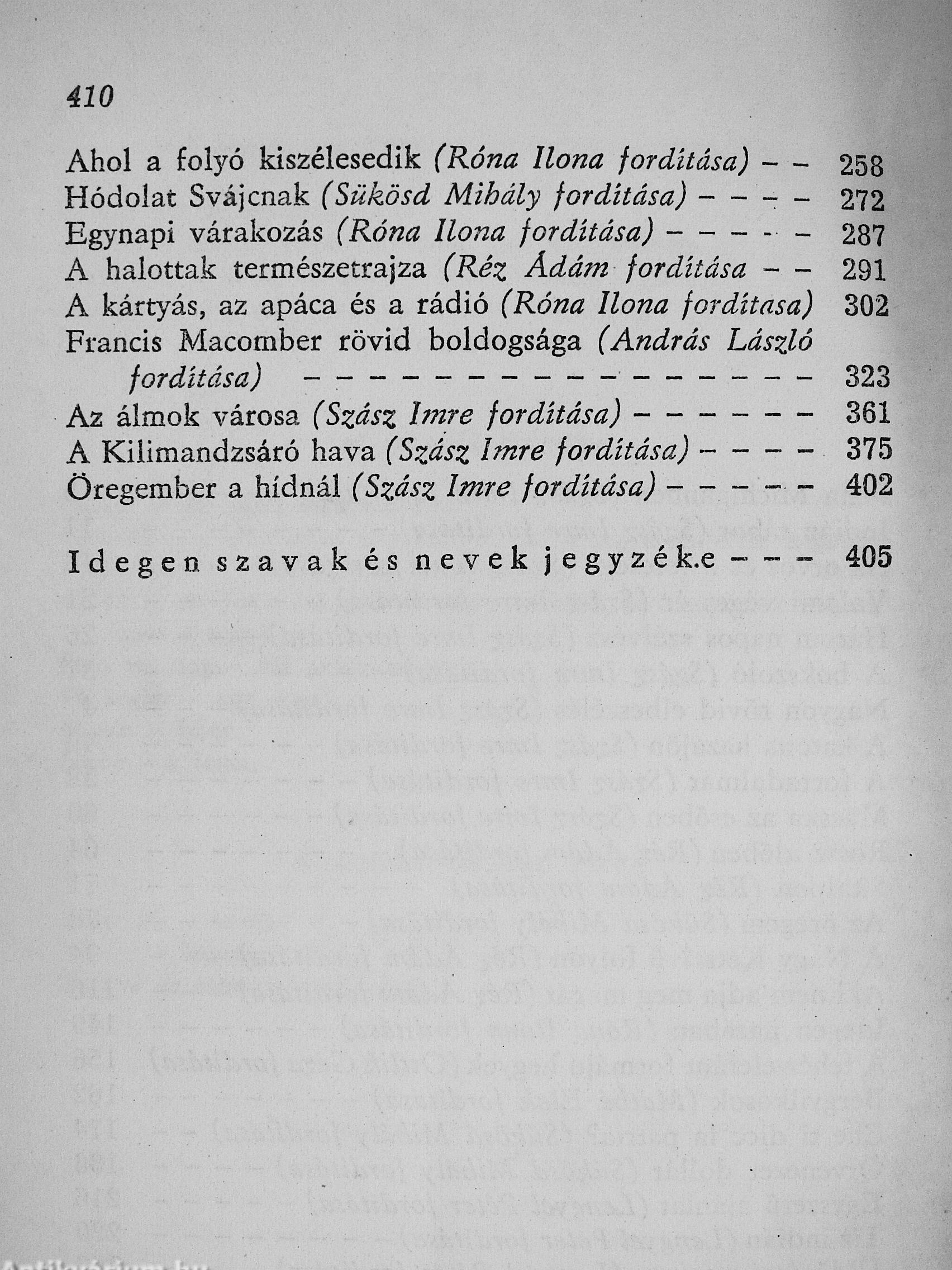 Ernest Hemingway műveinek az Antikvarium.hu-n kapható vagy előjegyezhető listáját itt tekintheti meg: Ernest Hemingway könyvek, művek