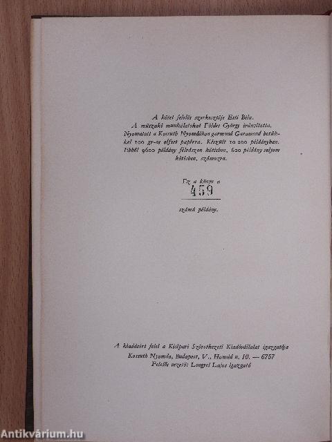 | Megjegyzés: | Selyem kötés. Sorszámozott kiadás. Fekete-fehér illusztrációkat tartalmaz. |