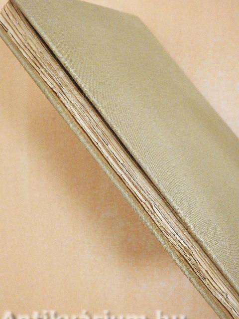 Az eredeti borító egy része vissza van ragasztva az első kötéstáblára. A lapélek egyenetlenek.