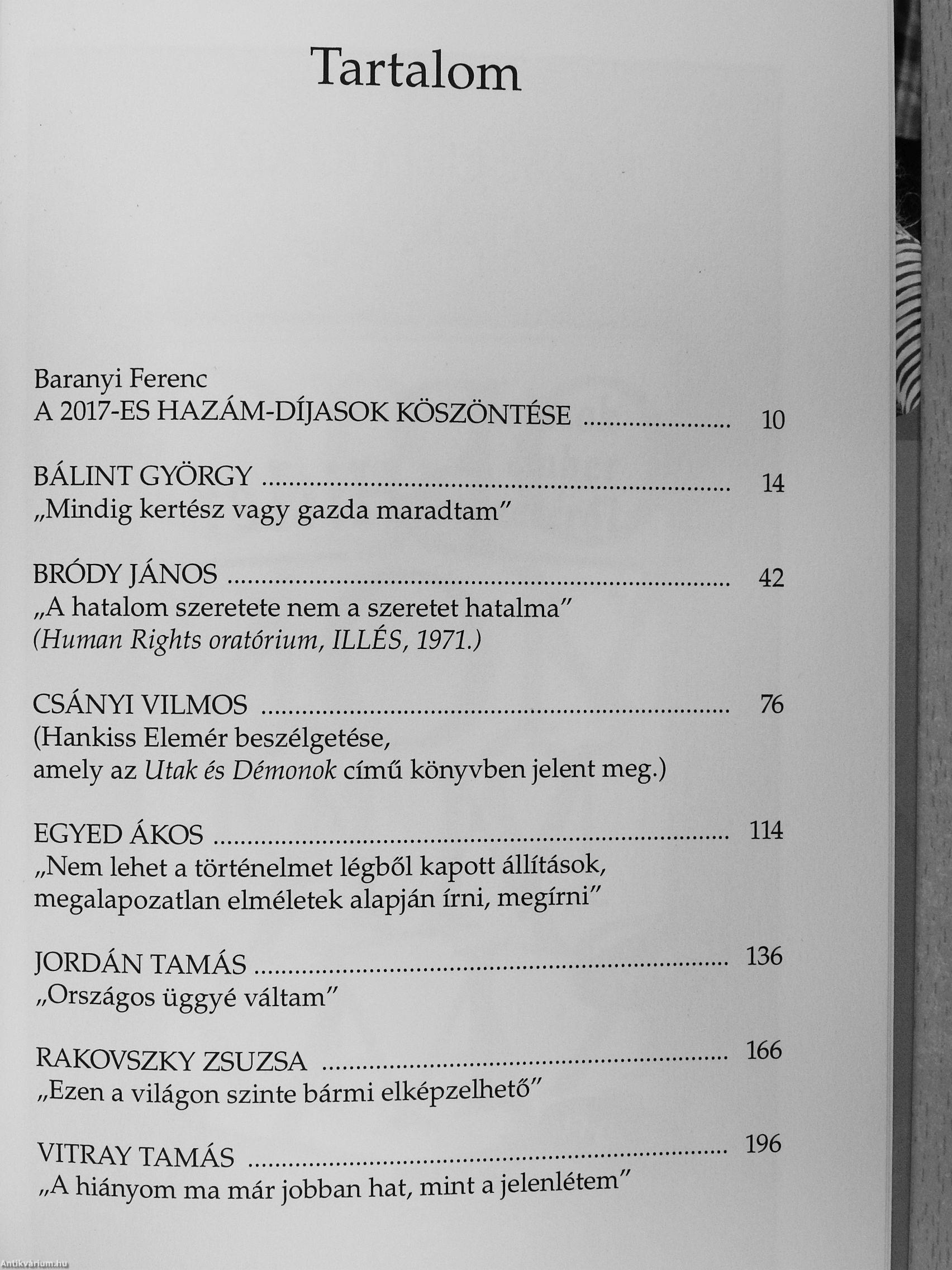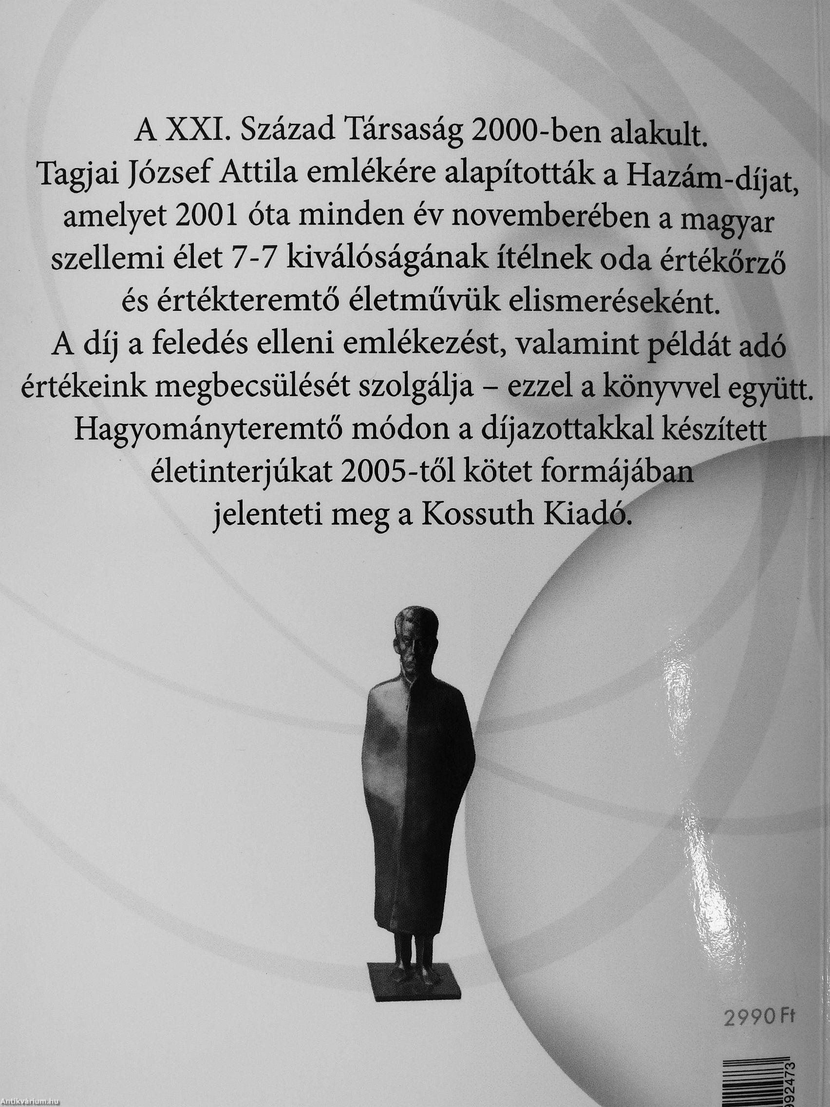 és értékteremtő életművük elismeréseként. A díj a feledés elleni emlékezést, valamint példát adó értékeink megbecsülését szolgálja - ezzel a könyvvel együtt. Hagyományteremtő módon a díjazottakkal készített _ életinterjúkat 2005-től kötet formájában jelenteti meg a Kossuth Kiadó.