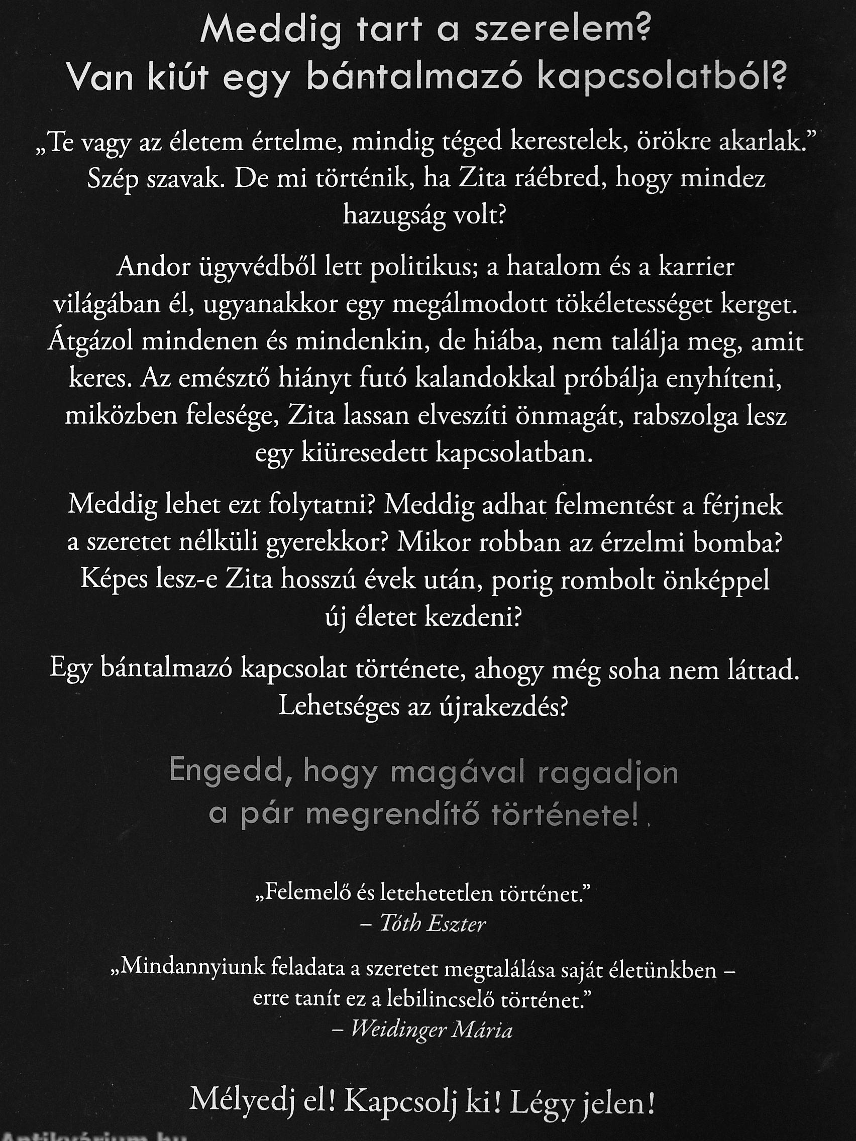 „Te vagy az életem értelme, mindig téged kerestelek, örökre akarlak.'^ Szép szavak. De mi történik, ha Zita ráébred, hogy mindez