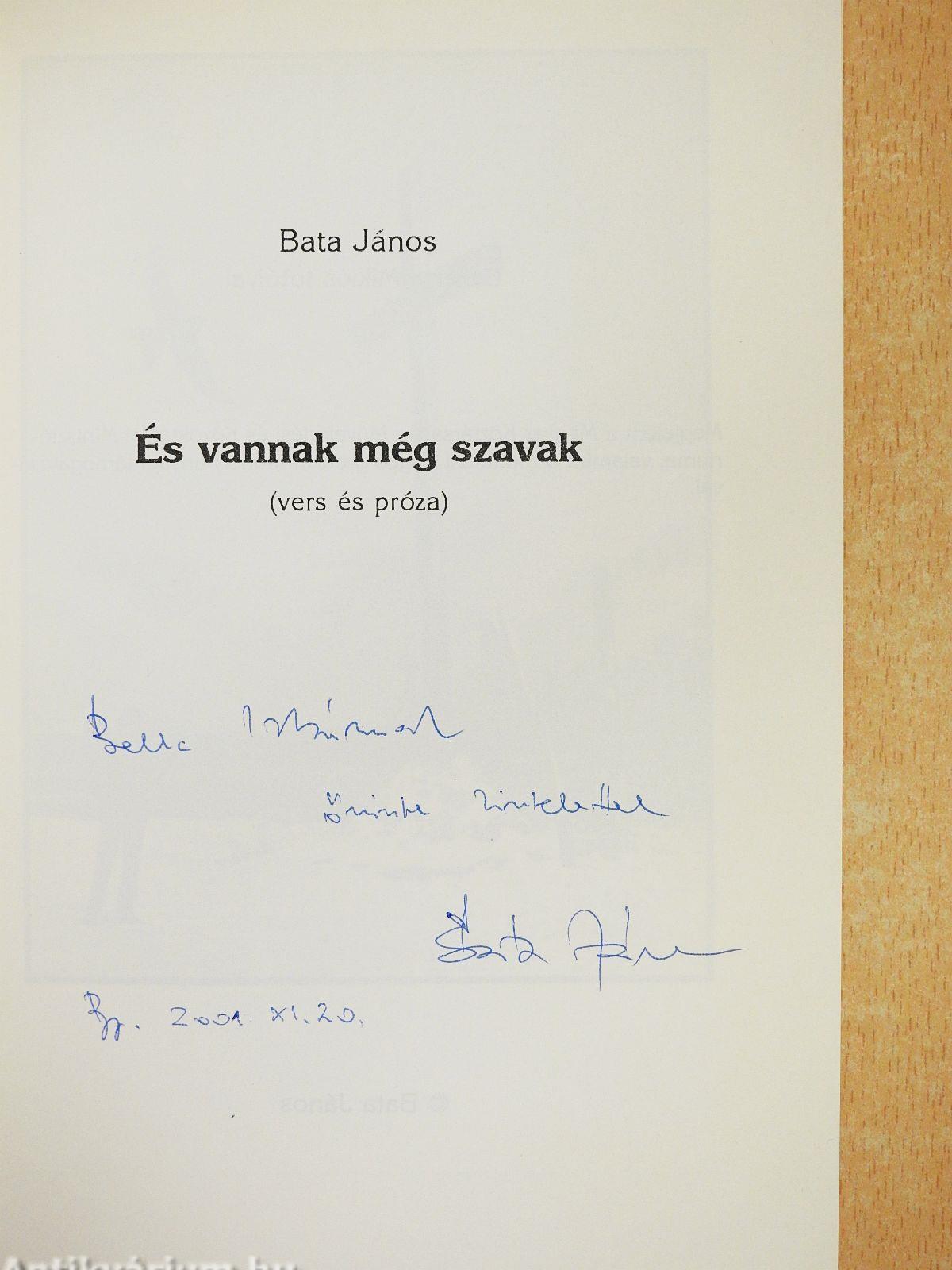 | Megjegyzés: | Bata János szerző által dedikált példány. Megjelent 800 példányban. Fekete-fehér fotókkal illusztrálva. |