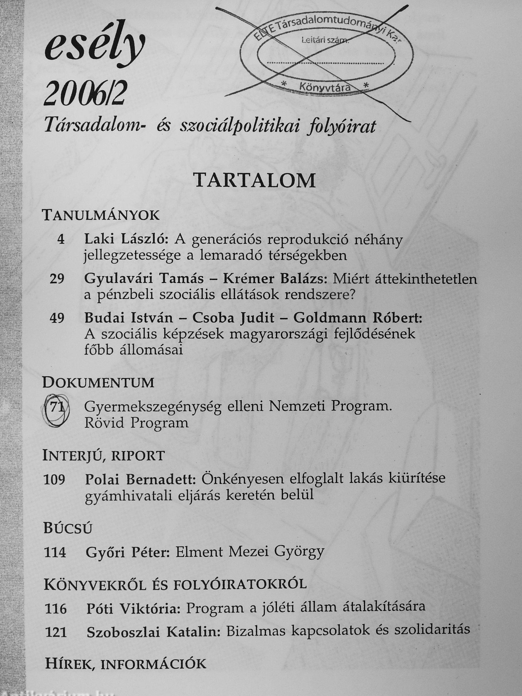 | Sorozatcím: | Esély |