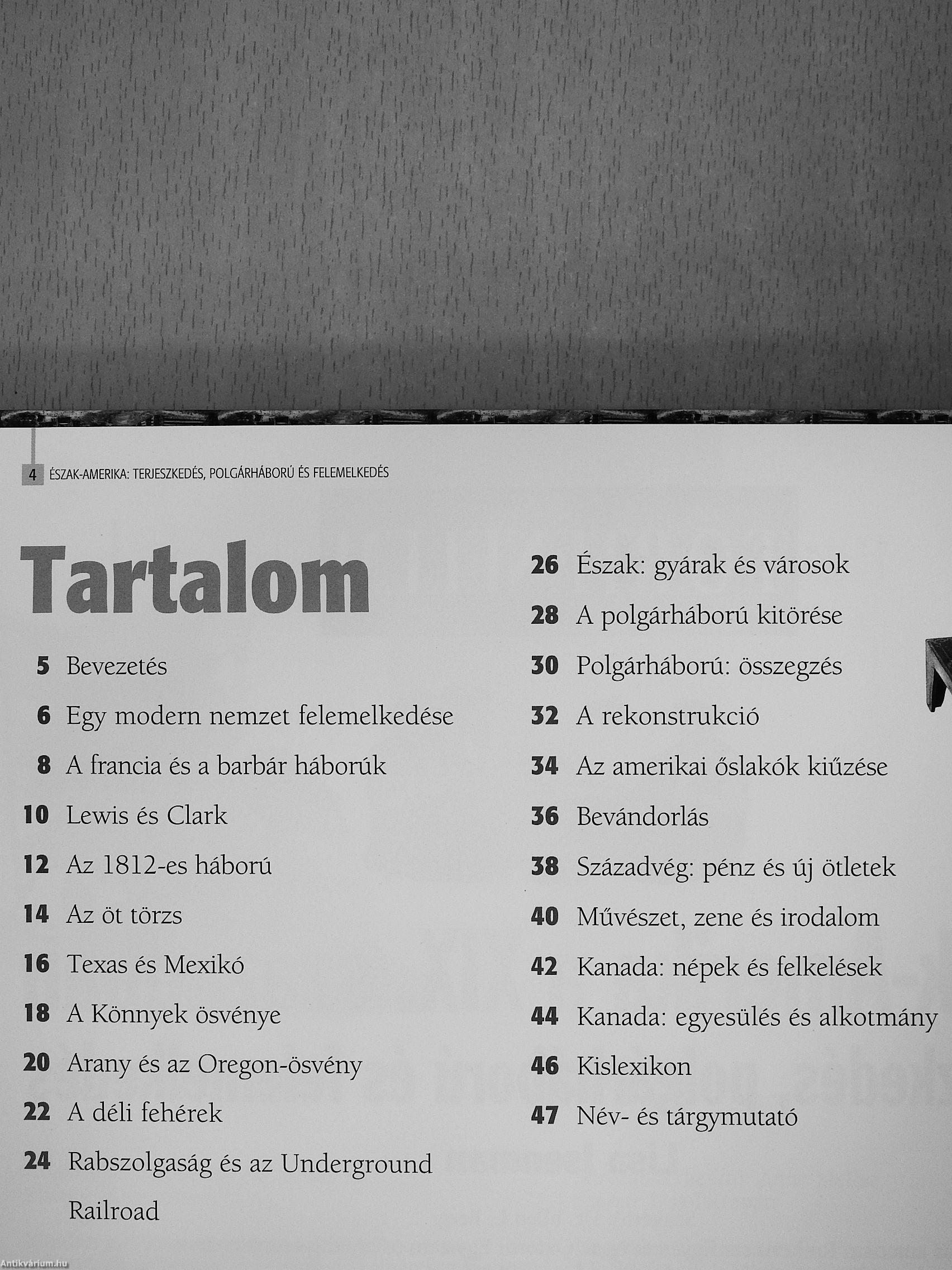 országok 7. A kora középkor 13. A benépesülő Amerika 19. Észak-Amerika a XIX. században