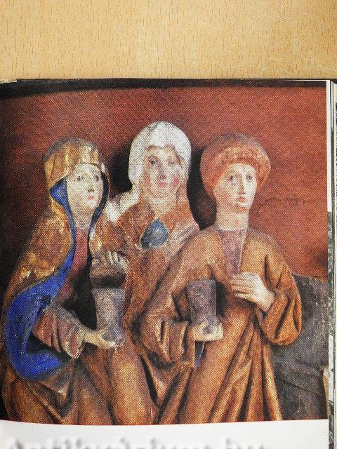 | Asszonyok a sírnál, a garamszentbenedeki Úrkoporsó részlete. XV. század. Magyar mester. Keresztény Múzeum | |