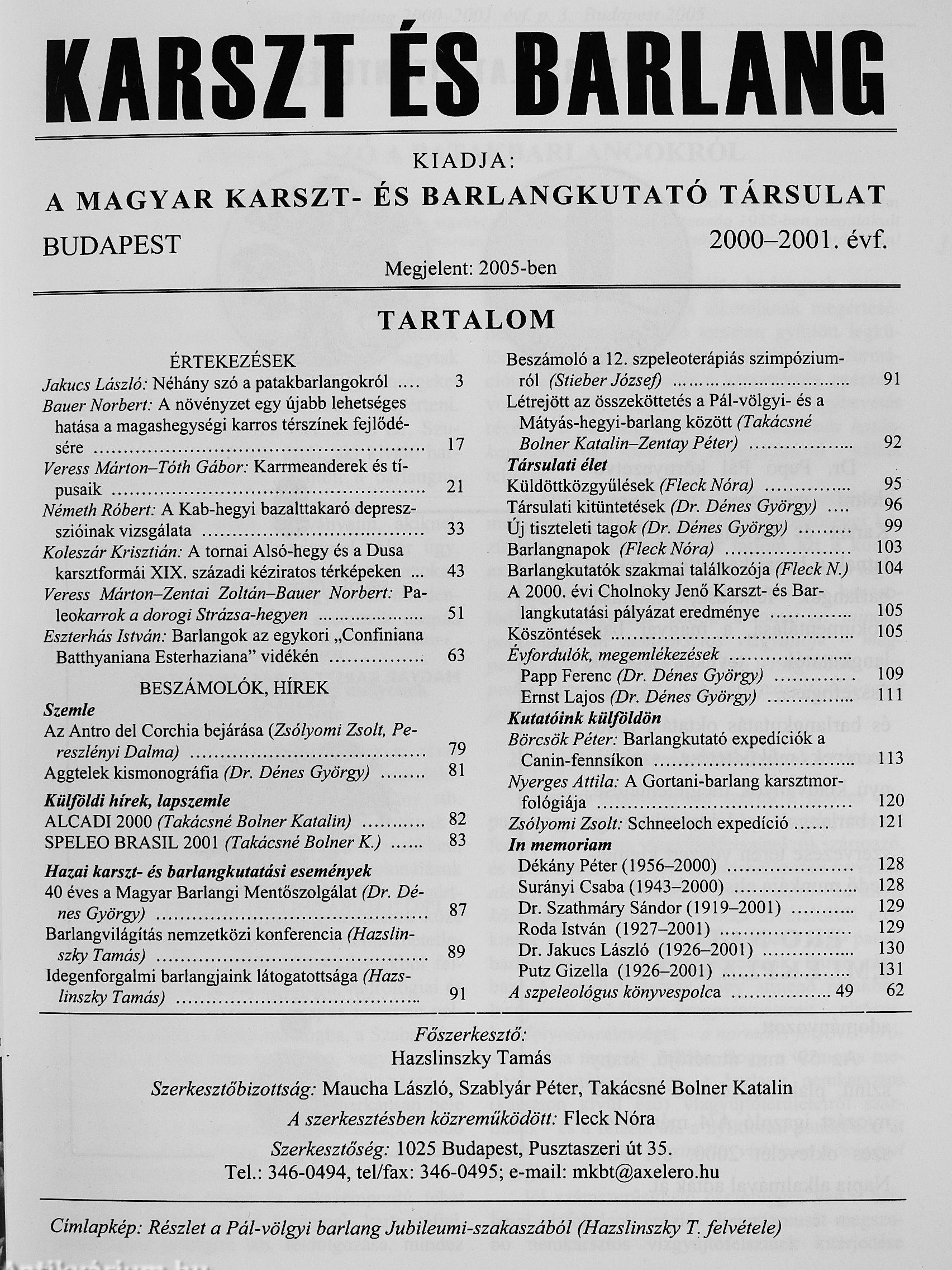 | Kiadó: | Magyar Karszt- és Barlangkutató Társulat |