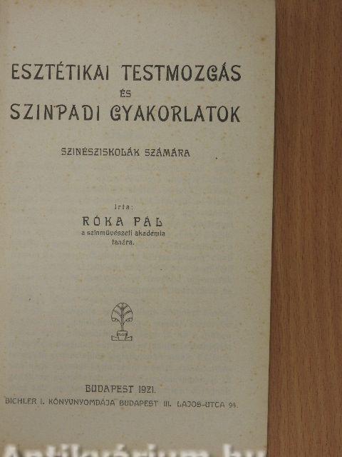 A sziniiskolák részére óhajtok ezzel a kis művemmel egy olyan szakkönyvet adni, mely hivatva lenne az eddig csakis a magyar királyi színművészeti akadémián tanított esztétikai tornát, különféle színpadi gyakorlatokat, ritmikus és klaszszikus iskolát rendszeresíteni, hogy azt minden sziniiskola egyformán vegye fel rendes tantárgyai közé. Művem megírásában, hogy az minél tökéletesebb legyen, egynémely részénél felhasználtam a német: Guttmann „Asthetische Körperbildung" cimü művét, azután az általam irt és 1901-ben megjelent „Táncművészeti tankönyv"-et, továbbá ugyancsak általam irt és 1921-ben megjelent „Klasszikus és ritmikus iskola" egész anyagát.