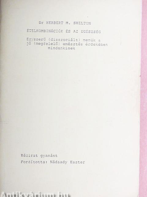 Dr. Herbert M. Shelton műveinek az Antikvarium.hu-n kapható vagy előjegyezhető listáját itt tekintheti meg: Dr. Herbert M. Shelton könyvek, művek
