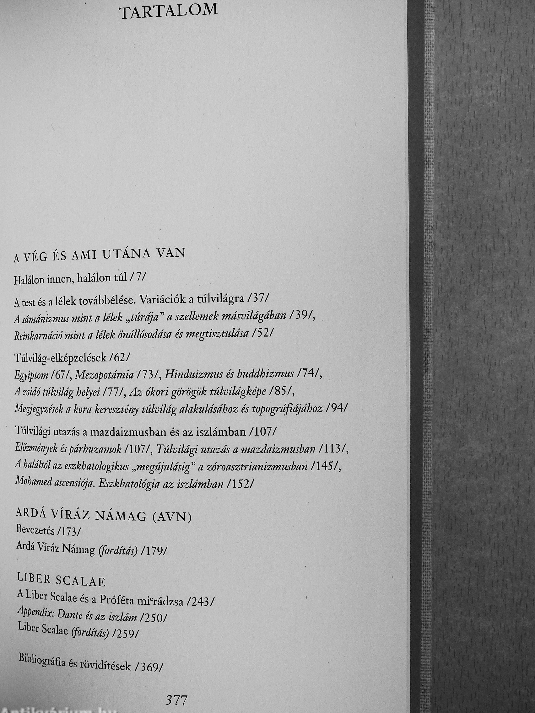 A kötet második részében két alapvető forrást nyújtunk át az olvasónak: a mazdaizmus híres túlvilági utazását a közép perzsa nyelvből fordított .-í/v/i? Víráz Nmmiff^l és Mohamed égi utazásai, amely annak legteljesebb verziójából, a latinul és ófranciául fennmaradt Liber Scalaeh6\ készült. Vissza