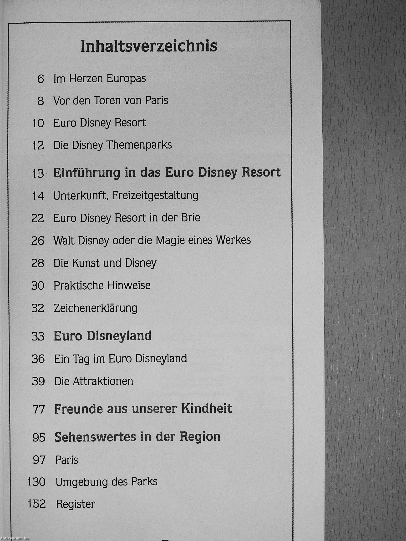 Freunde aus unserer Kindheit zeigen die bezaubernde Welt Walt Disneys. Das letzte Kapitel, Sehenswertes in der Region, beschreibt die Hauptsehenswürdigkeiten in der Nähe des Euro Disney Resorts: Paris, Champs, Ferrieres, Fontainebleau, Meaux, Moret-sur-Loing, Provins, Reims und die Champagnerkellereien, Vaux-Ie-Vicomte, Versailles.