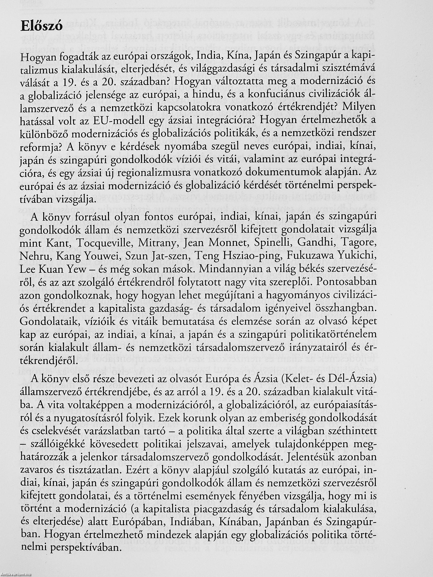 Akönyv a niodeniizáció és a globalizáció jelenségét és kölcsöiüiatásait vizsgálja történelmi perspektívában (19-21. század) az „Európa és Ázsia" között az állam és a nemzetközi szei-vezésről kibontakozó vita és párbeszéd fényében.