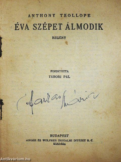 Nem tudom, hogy ez a történet csakugyan megesett-e? Nem tudom, hogy álmodtam-e talán, mint ahogy az ember tavasszal gyakran álmodik romantikus és valószínűtlen történeteket, míg a ciprusok árnyéka remeg a holdfényben és csalogány dalol halkan és kibírhatatlan édességgel. Bolond és valószínűtlen történet, amit el szeretnék mondani, nekem, aki leírom, mulatságos is - de ugyanakkor fájdalom is van benne. Éva, kicsi Éva és Archibald Green - vajjon hősnőm és hősöm ugy született árnyékból és fényből, mint ahogy kisgyerek rajzol nyírfavesszővel nedves és sötéten csillogó homokba a tengerparton? Vagy a valóságot fogtam el röptében, mint a varázslatos kék madarat? Nem tudom, ítélje meg az, aki ezt a könyvet olvassa s talán megbocsátja írójának, hogy álmodott. Vissza
