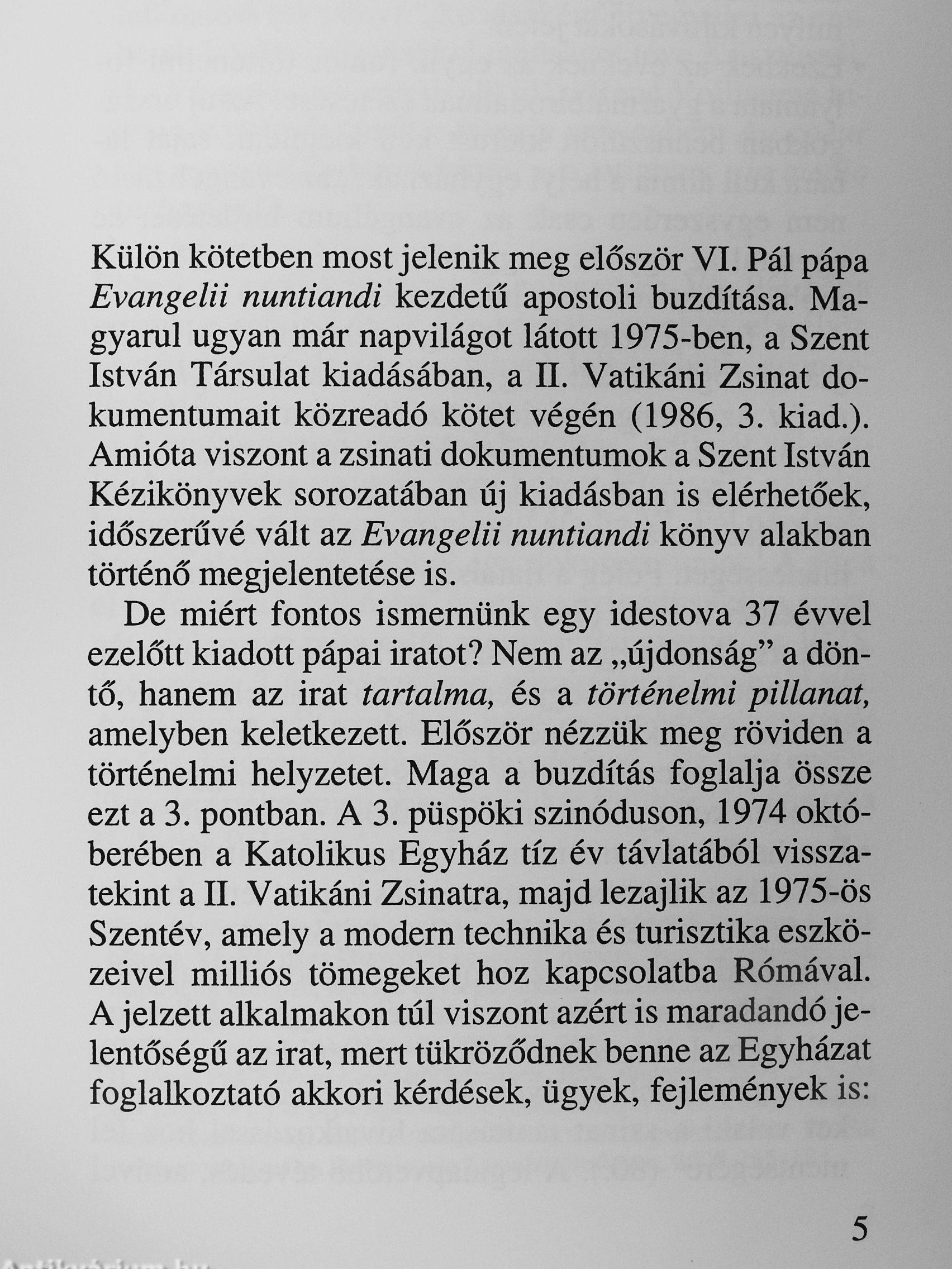 A Szent István Társulat azzal a szándékkal bocsátja közre ismét VI. Pál pápa apostoli buzdítását, hogy minél többen sürgető feladatuknak érezzék az evangelizációt, s így - a Hit évét nemrég meghirdető XVI. Benedek pápa szavait idézve - képesek legyenek utat mutatni sokaknak, akik keresik a „hit kapuját".