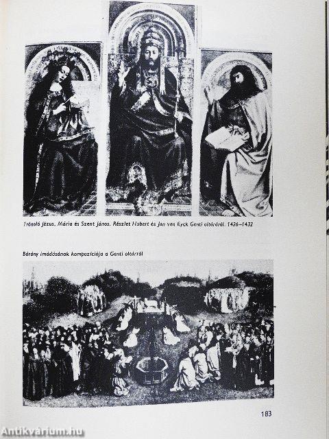 | A táblaképfestészet stílusának kialakulása a könyvfestészetből. Kolostori és városi íróműhelyek. Berry herceg zsoltáros könyve. A németalföldi festészet felvirágzása. A Genfi Oltár. Jan van Eyck korszakos újítása, az olajfestés. A polgári ízlés természethű stílust teremt. A későgótika modorossága - a "lángoló" stílus. A középkor alkonya. Máglyák a dómok tövében. Mathias Grünewald iszonyatos látomása | |