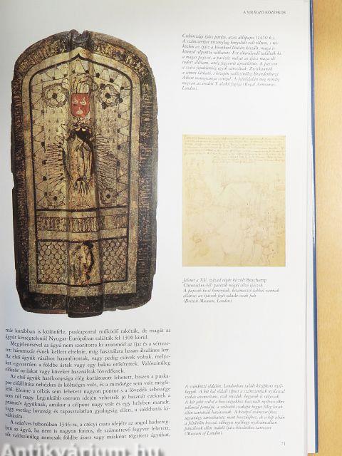 A fegyverek története a legkorábbi időktől párhuzamosan haladt az emberiség általános technikai fejlődésével. Először egyszerű botokkal, kövekkel harcoltak az emberek egymás ellen - illetve vadásztak az állatokra -, majd a fémek elterjedésével változatosabbak lettek a fegyverek. A tetet védő páncélok is megjelentek: bőrre, erős textilre varrt fémpikkelyekből vagy bronzlapokból alakították ki az első darabokat. A középkor lovagjai már vasemberek, mozgó erődök voltak, tetőtől talpig vasba öltöztek, s lovaikat is páncél borította. Az íj és a hidegfegyverek uralták a csatatereket a XIV. századig, de az ekkor feltűnő első, kezdetleges tűzifegyverek még inkább csak megriasztották, mint irtották az ellenséget. A sokféle hidegfegyver - kardok, buzogányok, lándzsafélék stb. - mellett a tűzifegyverek is sok formában készültek. Évszázadokon át tökéletesítették a fegyverművesek az elsütő szerkezetet, hogy gyorsabb és biztonságosabb legyen a tüzelés, és egy töltéssel több lövést is le lehessen...