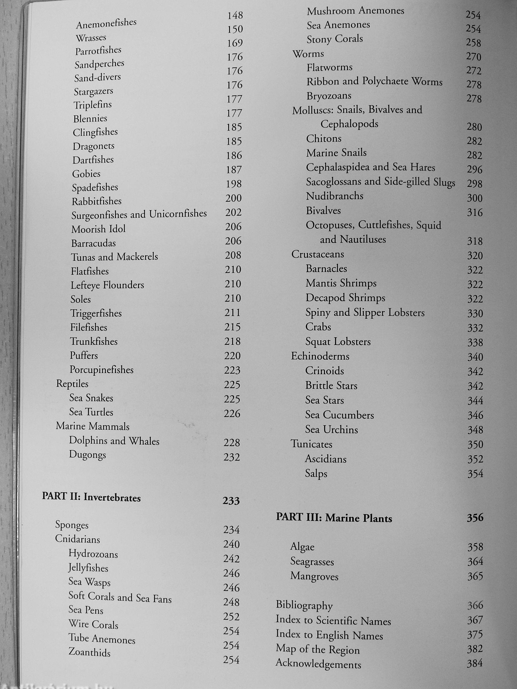 over 1200 species described and illustrated, covering fishes, turtles, whales, dolphins, invertebrates and corals, nudibranchs and marine plants
